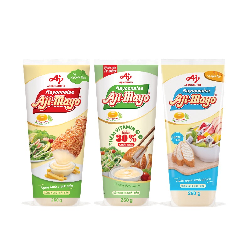 Sản phẩm Xốt Mayonnaise Aji-mayo® vị nguyên bản và Xốt Mayonnaise Aji-mayo® Ngọt dịu được sản xuất tại nhà máy Ajinomoto, dựa trên khẩu vị người Việt với hương vị phù hợp cho cả trẻ em và người lớn, tạo ra xu hướng mới trong thưởng thức ẩm thực.
